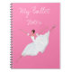 CARNET DE BALLET. BEAU CARNET POUR DES ANNOTATIONS DE DANSE À L'ARRIÈRE-PLAN DE ROSES INDIEN. UNE BELLE BALLERINE S'EST HABILLÉE DANS UN TUTU BLANC CLASSIQUE AVEC LA JUPE PELUCHEUSE SUFFISANTE PRENANT UN SAUT GRAND DE JETE. UN BEAU CADEAU POUR DES AMANTS DE BALLET. DESSIN DE BALLET PAR MARCELA BLANCO