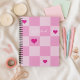 Restez organisé avec style avec ce carnet en spirale rose à damiers mignon aux accents cardiaques. Personnalisez-le avec votre propre nom, texte ou message pour créer un journal unique. Parfait pour l'école, le travail, ou comme un cadeau réfléchi pour les amis et les proches