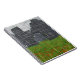Scène 3D créée en Vue, représentant le site d'une bataille ancienne, avec seulement les ruines en ruines d'une tour médiévale en pierre et des fleurs rouges dans l'herbe pour la commémorer. La chute de la pluie et l'effet d'aquarelle douce augmentent la tristesse de la scène en haut de la colline.