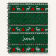 Un carnet de Noël rouge et vert décoré d'un sapin de Noël et de rennes et personnalisable, parfait pour ajouter une touche de magie saisonnière à votre vie.