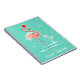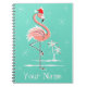 La conception élégante avec un rétro contact comportant un flamant rose de fête utilisant un casquette rouge, des étoiles et des palmiers de Père Noël décorés des babioles a placé sur un fond d'aqua. Une conception personnalisable pour que vous personnalisiez avec votre propres texte, images et idées. Une image originale d'art numérique créée par chic original.