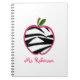 Un carnet de notes à spirale pour des professeurs comportant une illustration d'une pomme d'impression de zèbre décrite dans le rose. Personnalisez avec votre nom.