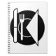 Cette conception est un couvert. Le couvert est à une table et est noir et blanc. Cette conception de couvert semble grande sur ce carnet de notes à spirale