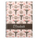 Un symbole de paix, un coeur et un caducée roses et bruns conçoivent avec les initiales RN sur les couvertures mignonnes et jolies de carnet de notes à spirale d'infirmière qui peuvent être personnalisées avec votre nom. Ce carnet fait sur commande fait un grand cadeau pour un étudiant de graduation de soins, un maître ou un infirmier autorisé de pratique. Il fait également un grand cadeau de semaine ou de jour d'appréciation d'infirmière. Il peut être employé comme journal, journal intime, livre de rendez-vous ou pour la note générale ou la prise record. Grand pour des approvisionnements de siège social ou de nouveau à l'utilisation d'école. © Chrissy H. Studios, LLC d'illustration. Tous droits réservés.
