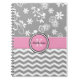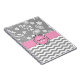 Caractéristiques décorées d'un monogramme modernes et à la mode de carnet de notes à spirale de rayures de chevron grises et rayures blanches de chevron et motif floral avec une frontière piquée par ruban rose d'accent avec un cadre rose rond d'accent décrit en noir et blanc pour votre initiale et nom. Montrez votre personnalité avec ce carnet de notes à spirale d'amusement et de rayure à la mode de chevron. Perfectionnez pour un journal, en prenant les notes, le travail, l'école et la maison. Fait un grand cadeau pour toutes les occasions. Cliquez sur la "personnaliser il !" boutonnez pour changer la taille des textes, la couleur des textes, le style de police et les plus ! Notez svp : la frontière horizontale de cadre de point de ruban d'accent rose est rose solide avec un aspect de point de ruban.