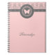 Joignez des notes et des rappels à cet élégant design de carnet avec un arrière - plan rose clair avec un bord de pétoncle et un emblème de papillon. Le texte personnalisable vous permet de modifier les polices, de modifier les couleurs et les tailles du texte comme vous le souhaitez. Personnalisez-vous ou faites un grand cadeau.