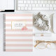 Ce carnet classique mais ultra-féminin présente un arrière - plan à rayures roses délicates, une bordure en faux or et un groupe de pivoines dans de jolis tons roux. Coordonnée avec nos suites d'invitation Pink Stripe & Blush Peony, fournitures de bureau, articles de maison et accessoires. Customisez avec un monogramme, un nom ou un texte de votre choix !