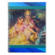 Image vintage de calendrier de Radha et de Krishna dans une humeur romantique avec une cascade et des paons à l'arrière-plan