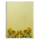 Carnet à spirale avec la frontière inférieure des tournesols jaunes lumineux sur l'arrière - plan texturisé de regard.