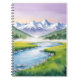 Ce somptueux carnet de vallée de montagne recouvre des sommets enneigés, une rivière cristalline serpentant à travers des prés verts et un ciel de lavande doux au crépuscule. La brume qui s'élève de l'eau apporte une touche de tranquillité, ce qui en fait un endroit idéal pour les carnets de découverte de la nature et d'établissement de buts.