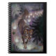 art numérique original peignant coyote laissant derrière lui des empreintes de lumière tandis qu'il progresse sur un chemin forestier la nuit. Art par Erin Cooper