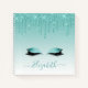 Moderne Elégant Le Carnet de Parties scintillant Turquoise tendance et tendance personnalisée avec votre nom. Script élégant. Eyelashes. Parties scintillant à goutte avec étincelles.