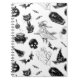Objets d'Halloween dessinés sur papier, puis tracés dans Illustrator pour créer motif.