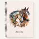 Carnet spiral avec une image représentant une paire de chevaux. Portant des bandeaux décoratifs. Entouré de plumes et de feuillage.