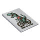 Dino en mouvement, ce design de dinosaure pour enfants présente un dinosaure à vélo avec le texte « Fino en mouvement ».