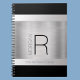 Personnalisez avec votre Monogramme et votre Nom sur métal brossé pour un look contemporain et dynamique en noir et gris. Un style simple et moderne, noir arrière - plan et gris foncé qui habillera votre carnet à la perfection. Fait un grand cadeau.