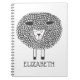 Mignonne brebis doodle noire aux joues roses. Personnalisez avec votre nom ou vos initiales en caractères noirs.