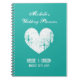 Carnet vintage ou journal de wedding planner avec la conception rustique de coeur. Organisateur mignon pour les couples engagés/futurs jeunes mariés prévoyant leur partie de mariage. Typographie élégante de manuscrit avec le symbole patiné d'amour. Joli arrière - plan ou personnaliser de bleu d'aqua/turquoise. Perfectionnez pour le pays chic ou les mariages orientés de plage. Faites votre propre petit livre pratique pour pour faire la liste, le budget, les coûts, les notes et les plans.