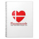 Drapeau national du Danemark avec points rétro comiques numériques et découpe en forme de coeur