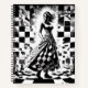 Gardez vos pensées en échec (et élégantes) avec ce carnet en spirale ! ♟️ 📓 Doté d'un design noir et blanc excentrique d'une fille en robe à damiers avec des pièces d'échecs, il est parfait pour les amateurs d'échecs et tous ceux qui aiment une touche de fantaisie dans leur prise de notes. Attrapez-en un, arrêtez vos mouvements, et laissez votre créativité s'envoler ! 🖋️ ✨ #CheckeredChic #ChessArt #NotebookNook