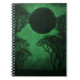 Carnet en vert Grungy et cool Dark Forest Eclipse avec une scène de forêt calme avec une éclipse lunaire. Ce carnet d'art numérique serait parfait pour l'écriture de poésie ou d'autres notes. Customisez avec votre propre texte.