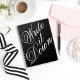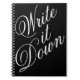 Un carnet avec un gros texte de script "Write it Down" pour toutes les choses que vous avez besoin d'écrire et de tenir. Montré ici avec un arrière - plan noir, vous pouvez changer la couleur de l'arrière - plan à la couleur de votre choix en sélectionnant le bouton "customiser" et en sélectionnant une autre couleur arrière - plan.