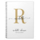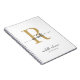 Cahier à spirales de signature féminine élégant, chic et moderne avec monogramme initial blanc et or. Ce design simple et minimaliste de couleur unie présente votre prénom dans un joli style de lettrage manuscrit avec une typographie à l'embranchement noir et un monogramme doré initial, un modèle de ligne de texte et de nom complet sur fond blanc. Facile à personnaliser. Cadeau personnalisé et sur mesure idéal pour une fête d'anniversaire, une pendaison de crémaillère, un mariage, un anniversaire Sweet 16, un enterrement de vie de jeune fille, une baby shower, la rentrée scolaire, le monde professionnel et pour quiconque aime le style minimaliste élégant et joli.