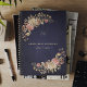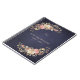 Elégant luxe look vintage de style professionnel monogramme carnet personnalisé pour un décorateur intérieur maison, designer, architecte, maquillage, coiffeur, styliste, styliste, wedding planner, salon de beauté manager, ou propriétaire boutique avec deux bouquets de crème pêche et roses rousses rousses à deux coins contre un arrière - plan bleu marine foncé de minuit. ++++++++++++++ Personnalisez-le avec votre monogramme / double monogramme, nom et texte.