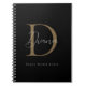 Carnet Élégant Monogramme Script Or Moussu Noir Minuit