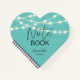 Customisez ce joli et élégant carnet d'esquisses avec vos détails personnels. Coeur de couleur turquoise avec lumières à cordes.