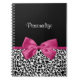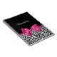 Un bloc-notes empreinte de léopard noir et blanc à la mode avec un ruban rose foncé et vivant attaché à un joli arc de cercle. Personnalisez ce motif animal chic et élégant en ajoutant le nom de votre ado. Impression plane, pas ruban réel.