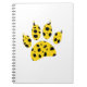 Empreinte de patte cheetah style dessin animé. Carnets personnalisés. Idée GIft pour les amateurs de wildcat !