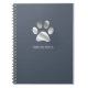 Logo empreinte de patte argent luxueux sur un élégant arrière - plan bleu poussiéreux. Ce carnet en spirale a une ligne de texte personnalisable pour personnaliser comme vous le souhaitez. Parfait pour tout amoureux des animaux ou entreprise lié à l'animal de compagnie.