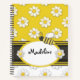 Personnalisez ce carnet en spirale joyeux avec ses motifs de marguerites jaunes et blanches brillantes accentués d'une grosse abeille bourdonnante mignonne. Modifiez simplement avec votre propre nom ou autre texte dans l'éditeur Zazzle facile à utiliser. Choisissez parmi 10 styles de papier différents à l'intérieur.