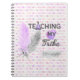 Carnet de notes à spirale personnalisé citation à la mode avec "enseignement de la ma tribu" tribu sur un motif rose de flèche. La typographie est un mélange moderne du lettrage profité et manuscrit, décoré des coeurs girly et des jolies plumes. Le modèle est installé pour que vous personnalisiez avec votre nom (ou nom de professeurs), qui apparaîtra sur la plume. La palette de couleurs est des nuances de rose, de mauve et de gris. Veuillez passer en revue notre magasin pour les articles assortis et coordonnés de "ma tribu".