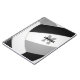 Ce carnet de volley sportif à thème spiral présente l'image réaliste d'un volley-ball abstraitement surdimensionné avec des panneaux noirs, gris et blancs - nom de l'athlète et monogramme, lettre de varsity, ou numéro de maillot sont personnalisables en coordination noir et gris - par katz_d_zynes