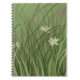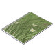 Aquarelle d'herbe longue avec des fleurs flottant parmi les lames vertes.