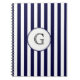Carnet Étiquette de monogramme blanc bleu marine