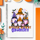 Ce design de #halloweengnomes apporte de l'humour et du charme à la #spookyseason avec une équipe de gnomes habillés de chapeaux de sorcière à carreaux, citrouilles et étoiles. Entouré de volutes, de chauves-souris et d'étoiles scintillantes, il capture le mélange parfait de #funnyhalloween et de #retrovibes.