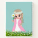 Belle Fée et fleurs sur arrière - plan bleu clair.