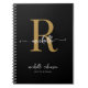 Cahier à spirales moderne, chic et élégant avec monogramme noir et or au nom initial. Ce design simple et minimaliste de couleur unie présente votre prénom dans une jolie typographie à queue avec lettrage manuscrit (ou calligraphie), monogramme initial, nom complet et modèle de ligne de texte, facile à personnaliser. Cadeau personnalisé idéal pour une fête d'anniversaire, une pendaison de crémaillère, un mariage, un anniversaire pour les 16 ans, une fête de mariage, une baby shower, la rentrée scolaire, le monde professionnel et pour quiconque aime le style minimaliste élégant.