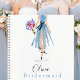 Un carnet personnalisé avec une femme dans une robe bleue à la mode avec de belles fleurs est un accessoire élégant et pratique pour toute femme de ménage, femme d'honneur, ou mère de mariée ou mariée. Ça pourrait être une excellente façon de demander à un ami d'être à la fête de mariage.