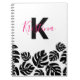 C'est un carnet chic et moderne personnalisable qui combine magnifiquement la personnalisation avec le style. La couverture est ornée d'une grande lettre en gras "K" en noir, superposée avec le nom "Kristina" dans une police élégante et cursive rendue dans une teinte rose frappante. Cette touche personnelle ajoute un charme unique au carnet, ce qui en fait un cadeau parfait pour quelqu'un de spécial ou un ajout élégant à votre propre collection de papeterie. La partie inférieure de la couverture est décorée d'un tableau de silhouettes en feuilles de Monstera noir, offrant une esthétique tendance et organique. Les feuilles de Monstera, connus pour leur forme particulière, apportent une touche de nature au design, le rendant frais et vivant. L'arrière - plan blanc offre une toile épurée et minimaliste qui fait apparaître les autres éléments, créant un contraste visuellement attrayant. Ce contraste améliore la lisibilité du texte et la visibilité des éléments de conception, ce qui les distingue.