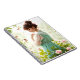 Jeune femme dans le jardin d'été avec roses roses et papillons.
