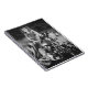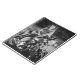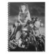 Pinup girl sur une moto italienne classique des années 1980 en noir et blanc.