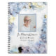 Les clients Invitations doivent laisser une note spéciale pour se souvenir de votre être cher après leur passage avec l'élégant livre d'hôtes Blue Hydrangea Flower Watercolor. Cette élégante célébration fleurie personnalisée de la vie hommage carnet mémorial comprend une photo florale peinte numériquement aquarelle de fleurs d'hydrangée bleu clair avec un arrière - plan blanc. Personnalisez-le avec le nom et la photo.