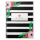 Un carnet de notes à spirale pour comporter de professeurs les rayures noires et blanches conçoivent sur l'avant avec la droite de conception florale en bas et en haut à gauche. Texte fait sur commande de caractéristiques avant sous l'illustration d'une pomme rose.