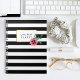 Le carnet floral moderne présente des rayures noires et blanches chic, agrémentées d'une jolie fleur de couleur aquarelle et d'accents faux or. Customisez avec un monogramme, un nom ou un texte de votre choix !