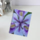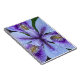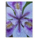 Un carnet de taille personnelle, relié en spirale, qui présente l'image de couverture d'une fleur d'Iris violet clair, sans barbe, avec des éclaboussures de jaune et de gouttes de pluie sur ses pétales. Un joli design floral ! Utiliser comme journal ou pour prendre des notes.