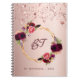 Un faux rose or à l'apparence métallique arrière - plan avec des étoiles de couleur or rose goutte à goutte. Décoré d'un cadre géométrique en faux or et de fleurs aux couleurs bordeaux, rose et or rose, fleurons. Personnalisez et ajoutez vos lettres monogrammes, vos initiales et un texte, titre.